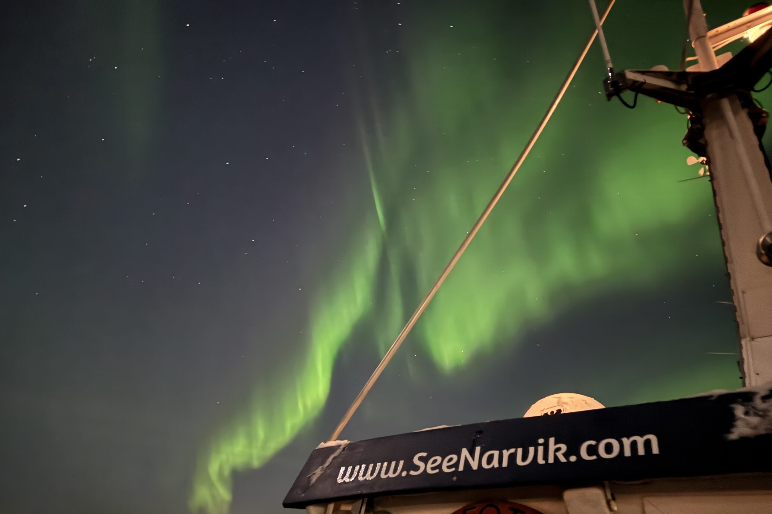 We take you out on the fjord so you can enjoy the Northern Lights from the sea, with our beautiful mountains as a backdrop and minimal light pollution — perfect for capturing spectacular photos.